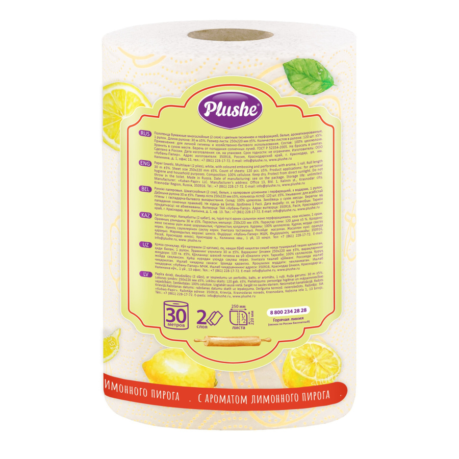Полотенце бумажное Plushe Лимонный пирог 2 слоя 30 м