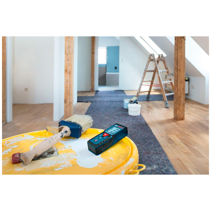 Лазерный дальномер Bosch GLM 40 Professional 0.601.072.900 - профессиональный прибор, который помогает измерять длину, вычислять площадь, рассчитывать объем. Он имеет надежный, ударопрочный корпус, благодаря чему срок службы выше. Произведенные измерения выводятся на 3-строчной дисплей с подсветкой. Модель запоминает последние 10 измерений. Устройство питается от 2 батареек типа ААА. Срока их службы хватает на более 5000 измерений.