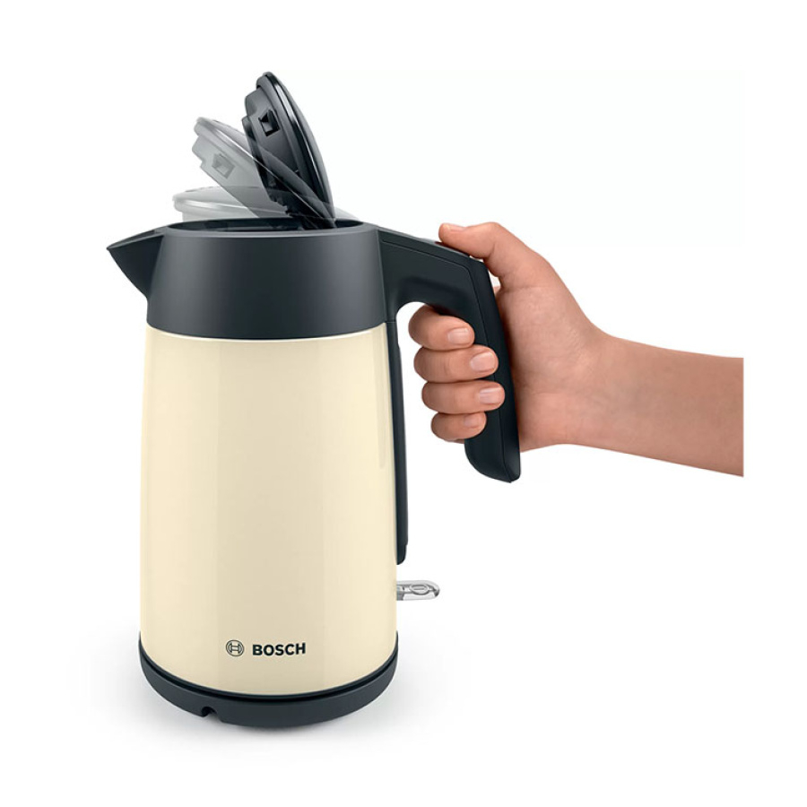Электрочайник Bosch TWK7L467 сочетает в себе изысканный бежево-черный дизайн и высокую производительность. Модель объемом 1,7 л выполнена с использованием нержавеющей стали и качественного пластика, что обеспечивает долговечность и стильный внешний вид. Скрытый нагревательный элемент мощностью 2400 Вт из нержавеющей стали гарантирует быстрое и равномерное кипячение воды.