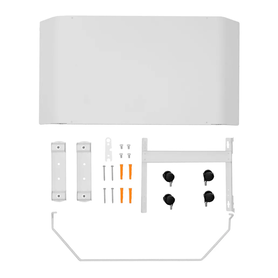 Напольная или настенная установка — в комплект поставки включена цельнометаллическая крепежная рамка для стены, а также стальные ножки с колесами.