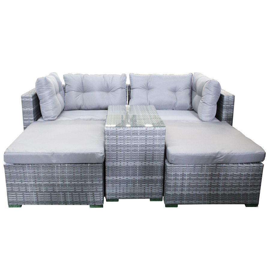 Комплект садовой мебели Sundays LUC-WK10 - это мебель для сада со множеством трансформаций. Из модулей можно составить не только большой диван для четырех человек, место для чаепития, но и целую лаунж-зону для приятного времяпровождения. Каркас мебели выполнен из прочной алюминиевой трубы и оплетен искусственным ротангом. Искусственный ротанг гарантирует вам долговременное использование мебели без потери первозданного вида - материал не выгорает на солнце, не боится перепадов температур, отлично переносит сырость. Подушки имеют съемные чехлы из полиэстера, которые легко постирать и они быстро сохнут. Столешница выполнена из закаленного стекла толщиной 5 мм. Мебель Sundays отлично подойдет для использования на открытой террасе или гармонично будет смотреться в зелени сада.