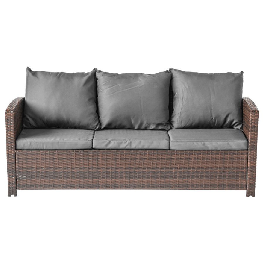 Мебель изготовлена из ротанга, этот материал: долговечный погодоустойчивый, не выгорает на солнце, не боится дождя и выдерживает большие нагрузки.