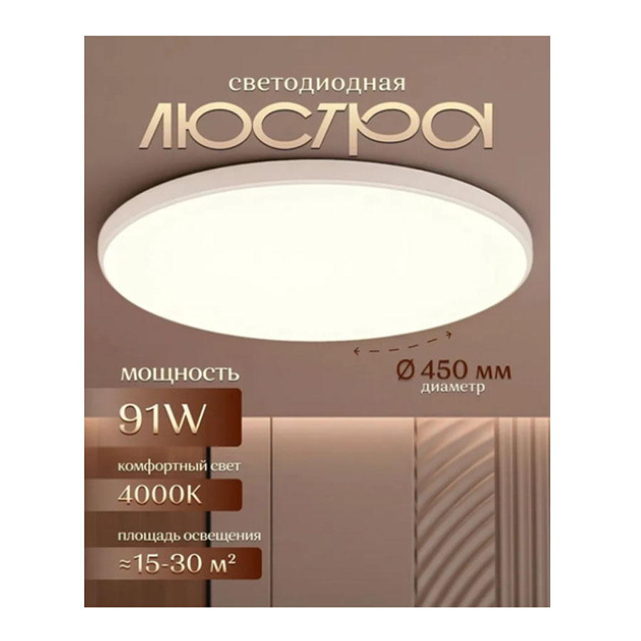 Светильник светодиодный накладной, 91W, круг, 4000K, IP20, металл, белый, DzivaTek, Артикул 51603