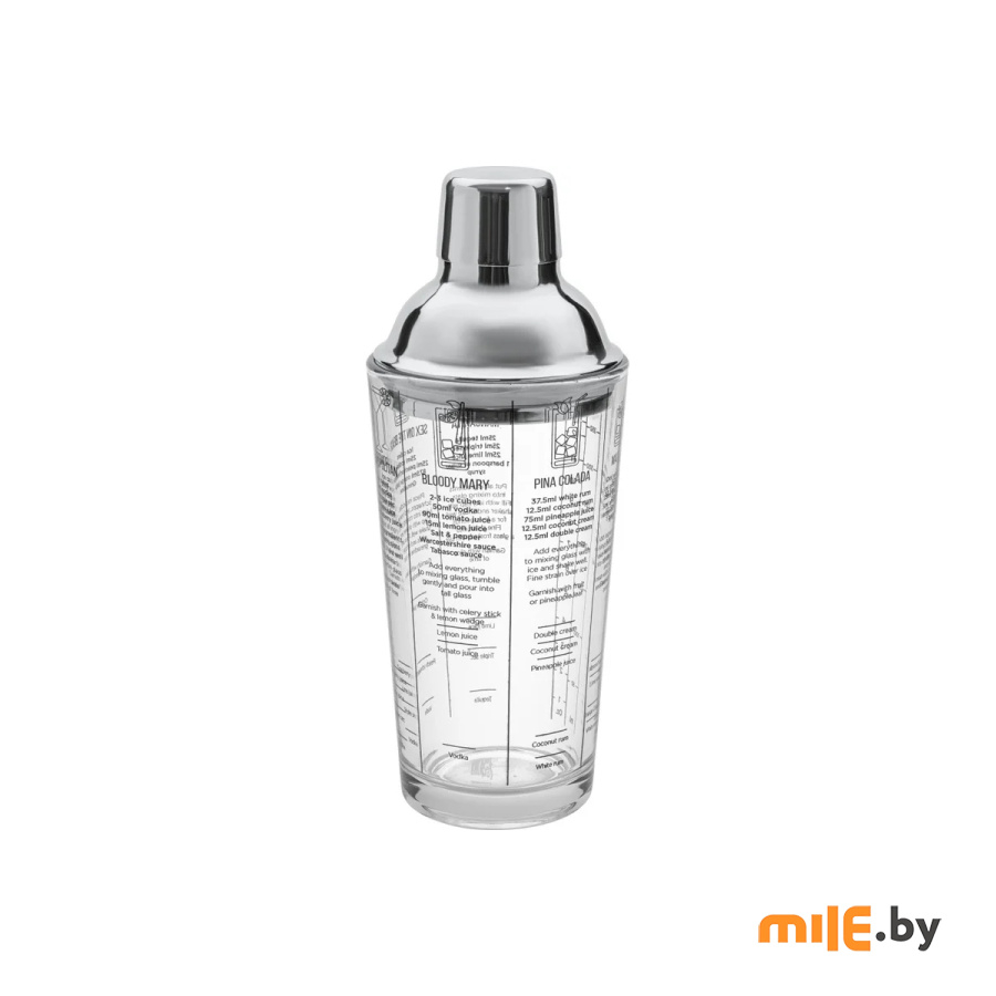 Шейкер предназначен для приготовления коктейлей и других напитков. Шейкер имеет удобную мерную шкалу и снабжен ситечком для фильтрации. Материалы изготовления: стекло, нержавеющая сталь, силикон.