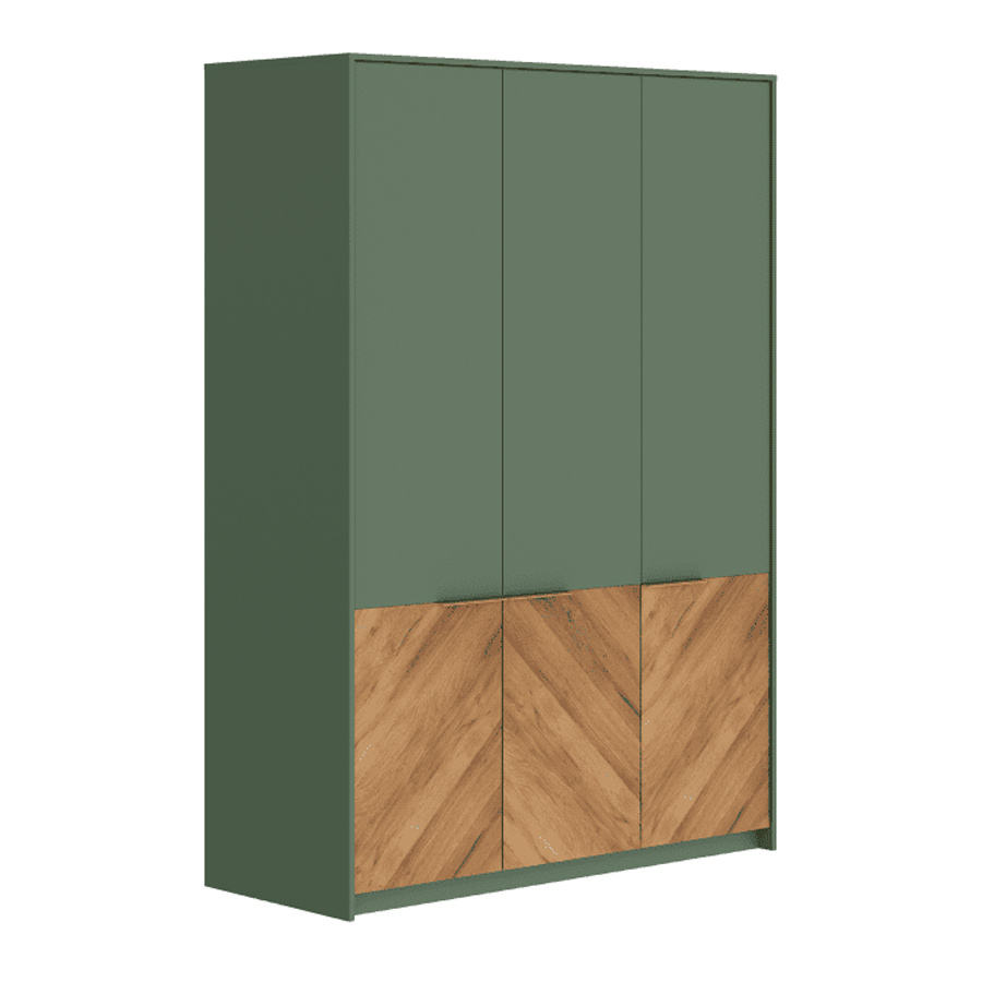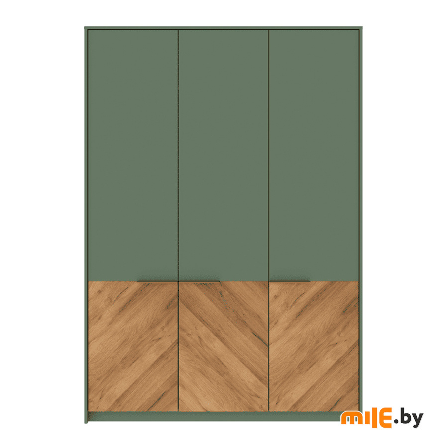Шкаф в оттенках дымчатого зелёного и дуба вотан - это стильное и современное решение для тех, кто ценит элегантность и функциональность. Трёхстворчатая модель прекрасно впишется в интерьер спальни или прихожей, обеспечивая удобное хранение вещей.