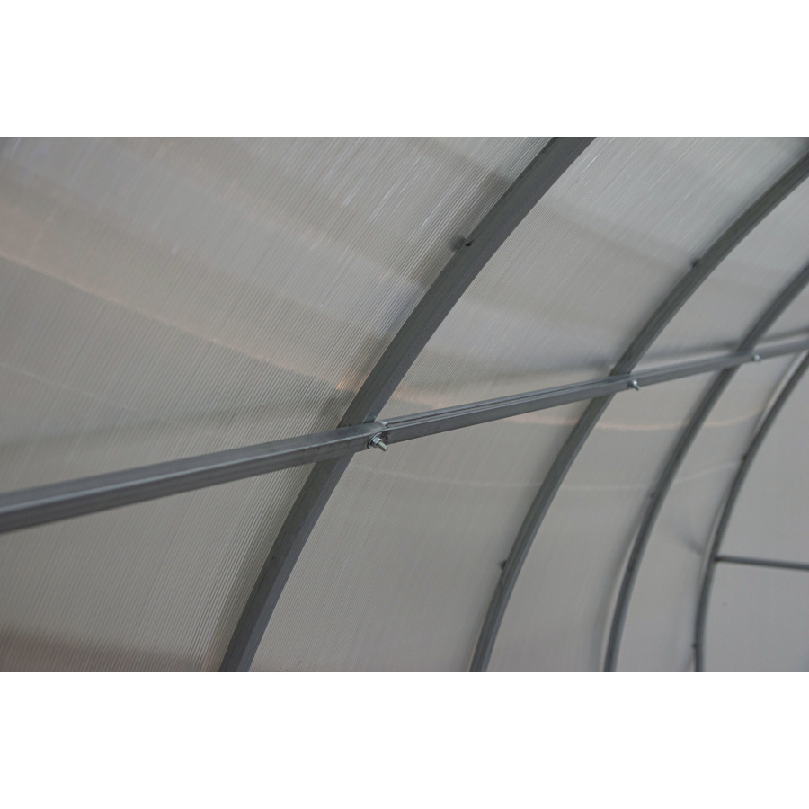 Высота теплицы 2 метра. Высота конструкции позволяет с удобством выполнять все работы, растения беспрепятственно растут вверх. Подходит для выращивания высокорослых и вьющихся сортов. Стандартная ширина – 3 метра. Достаточно большое пространство в теплице. Такая ширина позволяет установить высокие грядки и оставить достаточное место для прохода между рядами. Комплектация теплицы: 1. Профильные трубы (каркас); 2. Профильные трубы (поперечины); 3. Грунтозацепы; 4. Болты; 5. Шайбы; 6. Гайки; 7. Саморезы; 8. Кровельные саморезы; 9. Поликарбонат сотовый с двойной УФ-защитой. В комплект к теплице также входит паспорт изделия. В нем содержится подробное описание по сборке конструкции и раскройке поликарбоната. С помощью инструкции Вы сможете без труда монтировать (и демонтировать, при необходимости) теплицу.