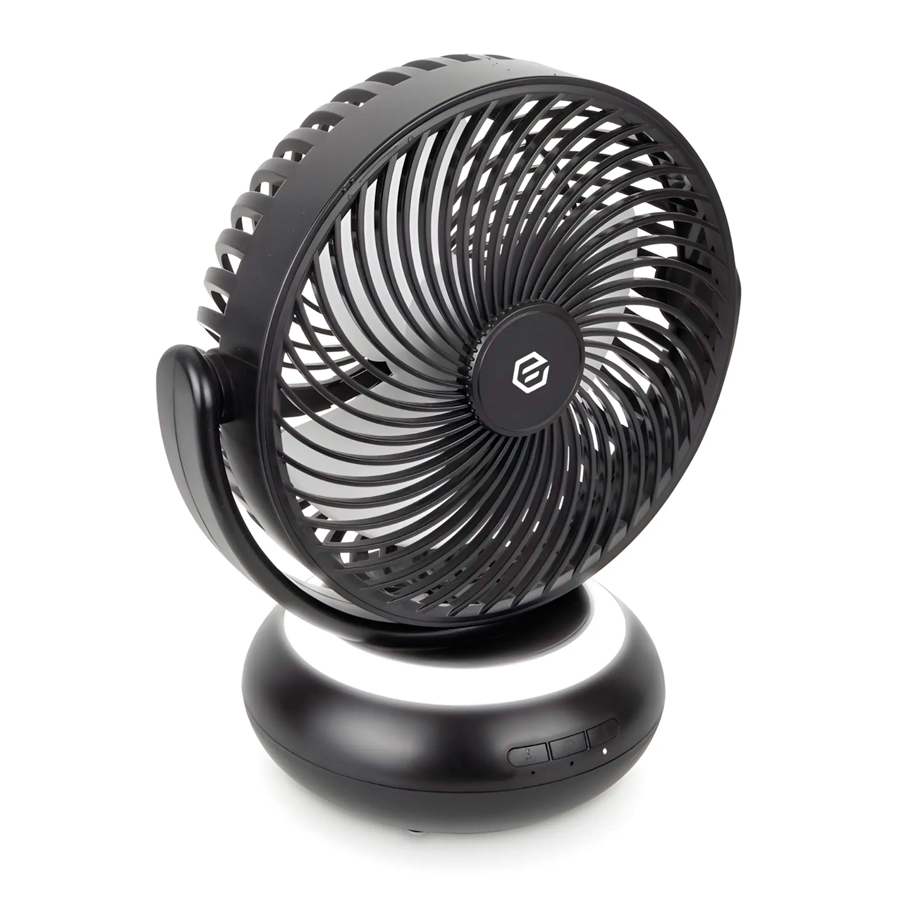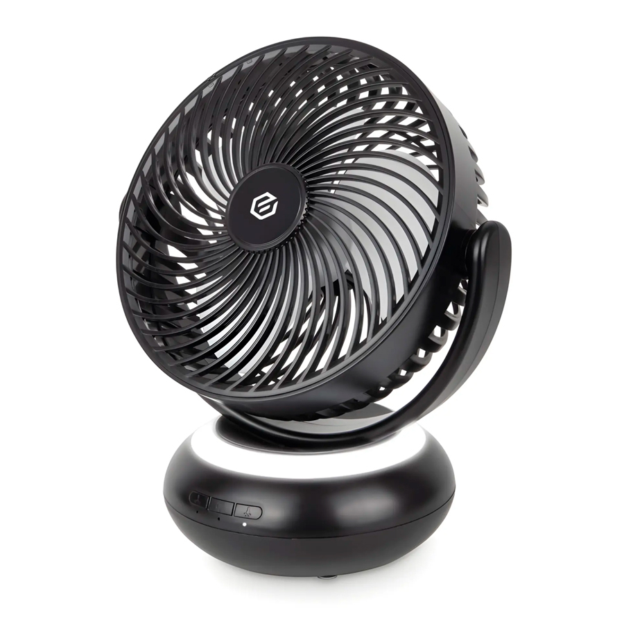 Полезные опции маленького настольного вентилятора – выбор одного из трех режимов мощности, одной из двух видов подсветок. На основании расположены три кнопки для управления настольным вентилятором: выбор мощности, подсветки и включение реверса. Также прибор можно разворачивать вверх и вниз на 180°, направляя воздух в нужную сторону.